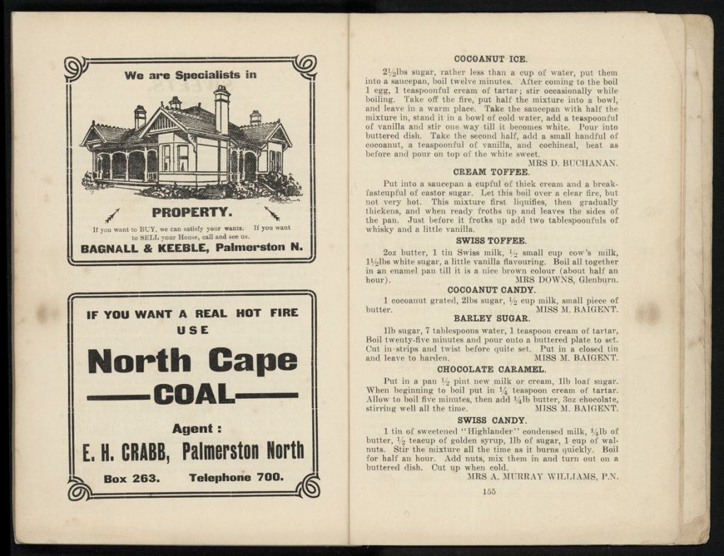When the word ‘lollipop’ made its first appearance in 1784, it just meant sweets. Lollipops didn’t get their defining feature, the stick, until the early 1900s – after the invention of a machine that could insert them. The abbreviated term ‘lollies’, of course, remains a distinctive local parlance for sweets, with or without sticks, in Australasia.8 New Zealand’s confectionery culture, like its cuisine generally, is inherited from Britain. In Tim Richardson’s book Sweets: A History of Temptation, the author recounts how the first British settlers had a sweet tooth in common with Māori. In the 1840s, Thomas Brunner reported eating fern root moistened with dark brown sugar crystals from the pith of the cordyline plant (cabbage tree); it tasted like gingerbread.9 Lollies were often made at home by settlers in New Zealand, as they had been in Britain. Nineteenth- and early twentieth-century cookery books such as Mrs Beeton’s in Britain and Colonial Everyday Cookery in New Zealand contained recipes for confectionery.10