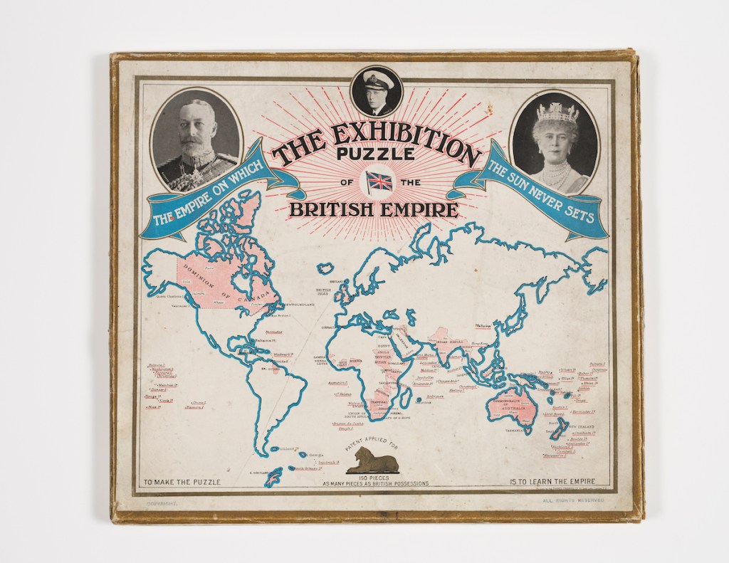 The lettering at the top of the puzzle states proudly that the sun never sets on the British Empire. This was literally true, since the Empire had possessions right round the globe, covering just about all time zones.