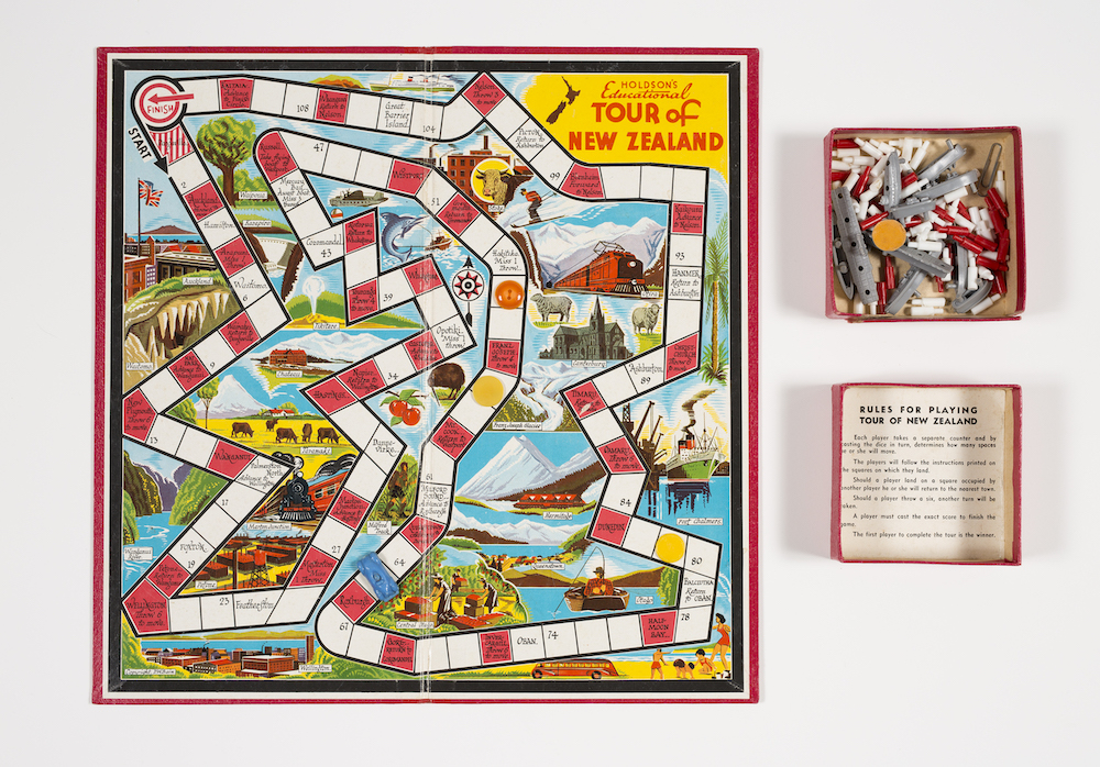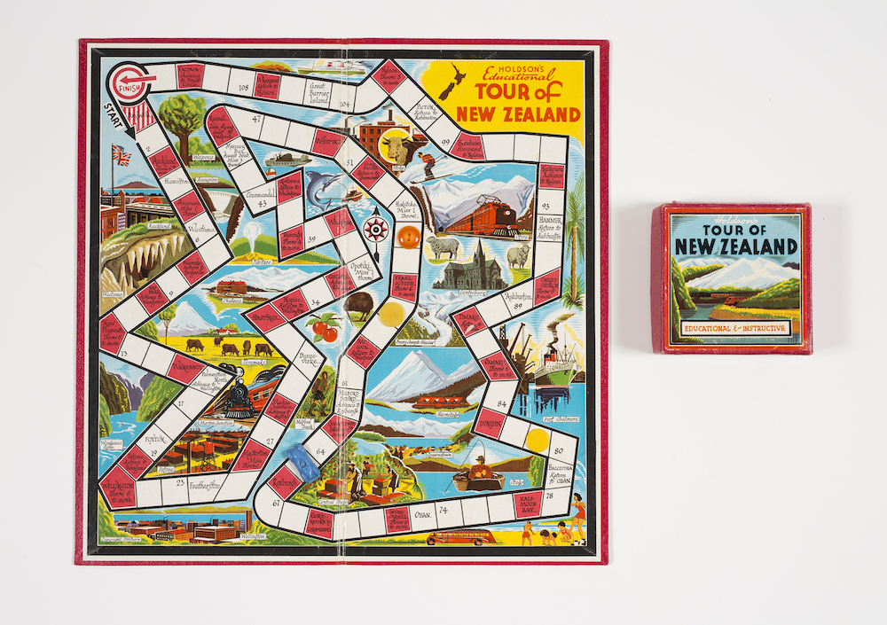 - Game, board, 1960s, Puke Ariki, PA2004.113, URL: https://collection.pukeariki.com/objects/38075/game-board, accessed 29 October 2024. ↩︎