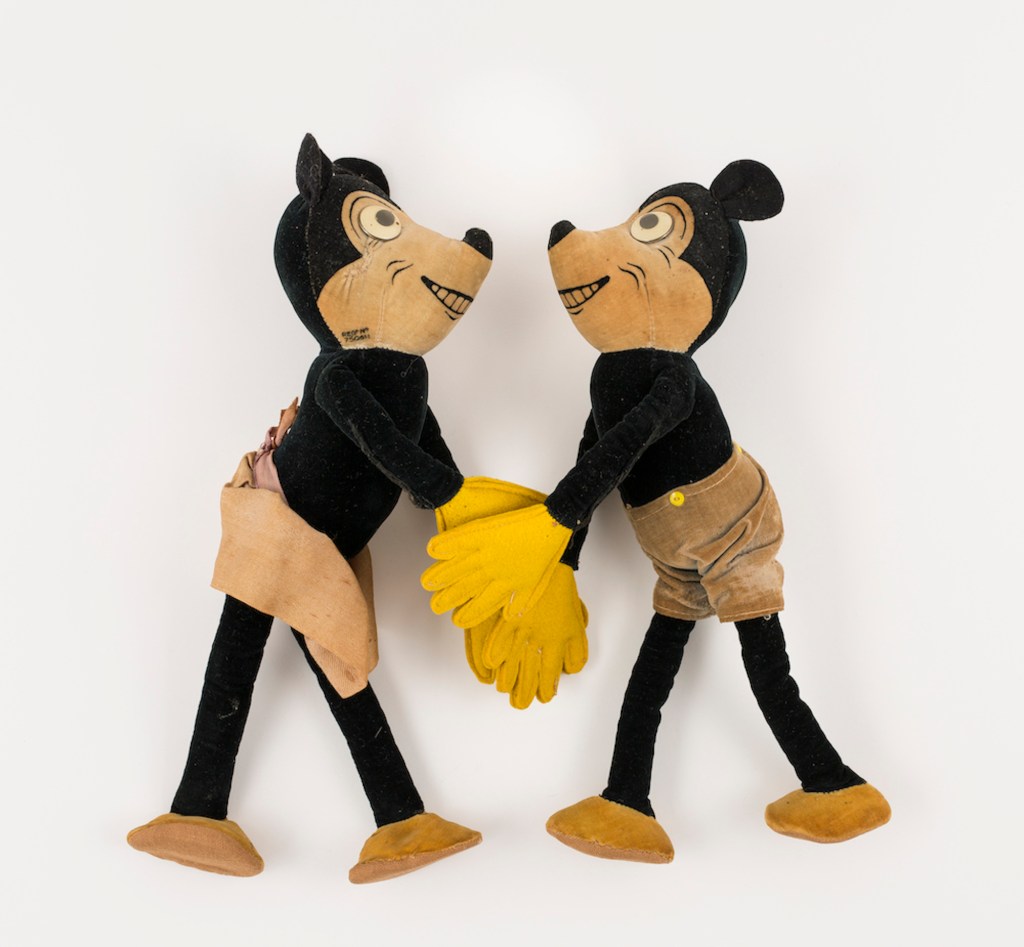 These Mickey and Minnie Mouse dolls were created by the Dean’s Rag Book Company. The business was originally a children’s book publishing firm founded in London in 1800 by Thomas Dean, called Dean & Son.3 They were a leading company in the development of interactive and pop-up books and were a highly established printing firm in Britain during the 19th century.4