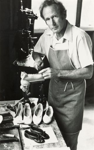 The Pellow company has an interesting history of boot repairs and boot making in Palmerston North, which led on to making dance shoes. It began with Albert Pellow (c. 1871–1946) who was a boot repairer at the family-owned workshop in Pitt Street. His son, also Albert Pellow (c. 1895–1969), started making dance shoes in about 1930. In turn, his son James Albert Pellow (1925–2006), took over the firm in 1951, which was still in Pitt Street at number 28. The business had various numbers over time – 10, 16 and 28 Pitt Street, presumably as the street grew in size and was renumbered. At some stage the business was sold to Ted Anderson and then in 1980 he sold it to Scott Robinson, who made shoes at 23 Alfred Street.1 The Manawatu Evening Standard took a photograph of Scott Robinson in his workshop in March 1980, standing at the special soft leather sewing machine.